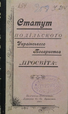 СТАТУТ ПОДІЛЬСЬКОГО УКРАЇНСЬКОГО ТОВАРИСТВА ПРОСВІТА (1908)
