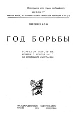 Бош Е. Б.ГОД БОРЬБЫ. БОРЬБА ЗА ВЛАСТЬ НА УКРАИНЕ С АПРЕЛЯ 1917 ГОДА ДО НЕМЕЦКОЙ ОККУПАЦИИ (1925)