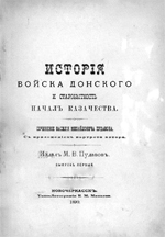 | 6. |  | Пудавов В. М. ИСТОРИЯ ВОЙСКА ДОНСКОГО И СТАРОБЫТНОСТЬ НАЧАЛ КАЗАЧЕСТВА Вып. 1, [ч. 1] (1890) | 1890 Книги