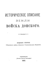 | 2. |  | Попов А. ИСТОРИЯ О ДОНСКОМ ВОЙСКЕ, СОЧИНЕННАЯ ДИРЕКТОРОМ УЧИЛИЩ В ВОЙСКЕ ДОНСКОМ, КОЛЛЕЖСКИМ СОВЕТНИКОМ И КАВАЛЕРОМ АЛЕКСЕЕМ ПОПОВЫМ 1812 ГОДА, В НОВОЧЕРКАССКЕ Ч. 1 (1814) | 1814 Книги