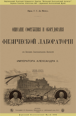 | | Назва(и): | ОПИСАНИЕ СООРУЖЕНИЯ И ОБОРУДОВАНИЯ ФИЗИЧЕСКОЙ ЛАБОРАТОРИИ ПРИ КИЕВСКОМ ПОЛИТЕХНИЧЕСКОМ ИНСТИТУТЕ ИМПЕРАТОРА АЛЕКСАНДРА II (1898-1903)